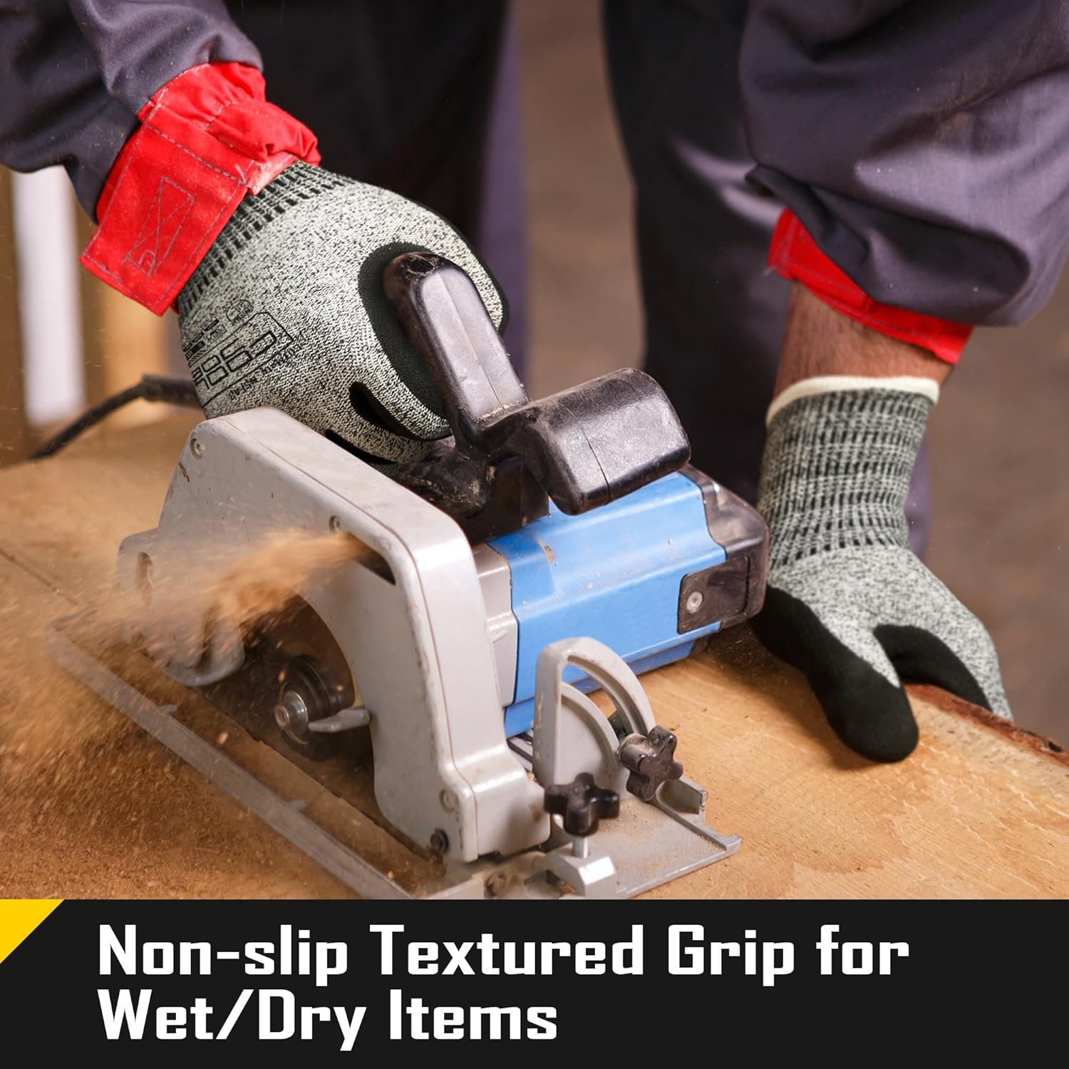 [Cut-Resistant and Durable] This glove is made from high-performance polyethylene (HPPE) and metal yarn, providing a remarkable A3 level of cut resistance. With a cut protection level 5, it can withstand the cutting force of sharp objects up to 1000 grams.