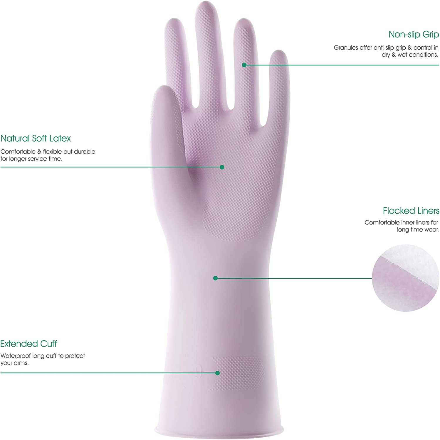 - Non-Slip Grip for Maximum Control: Featuring granules on the palms and fingers, these rubber gloves provide a reliable anti-slip grip, giving you full control in dry, damp, and wet conditions. Whether you're dishwashing, cleaning, or handling liquids, you can trust these gloves to keep your tasks secure and efficient.