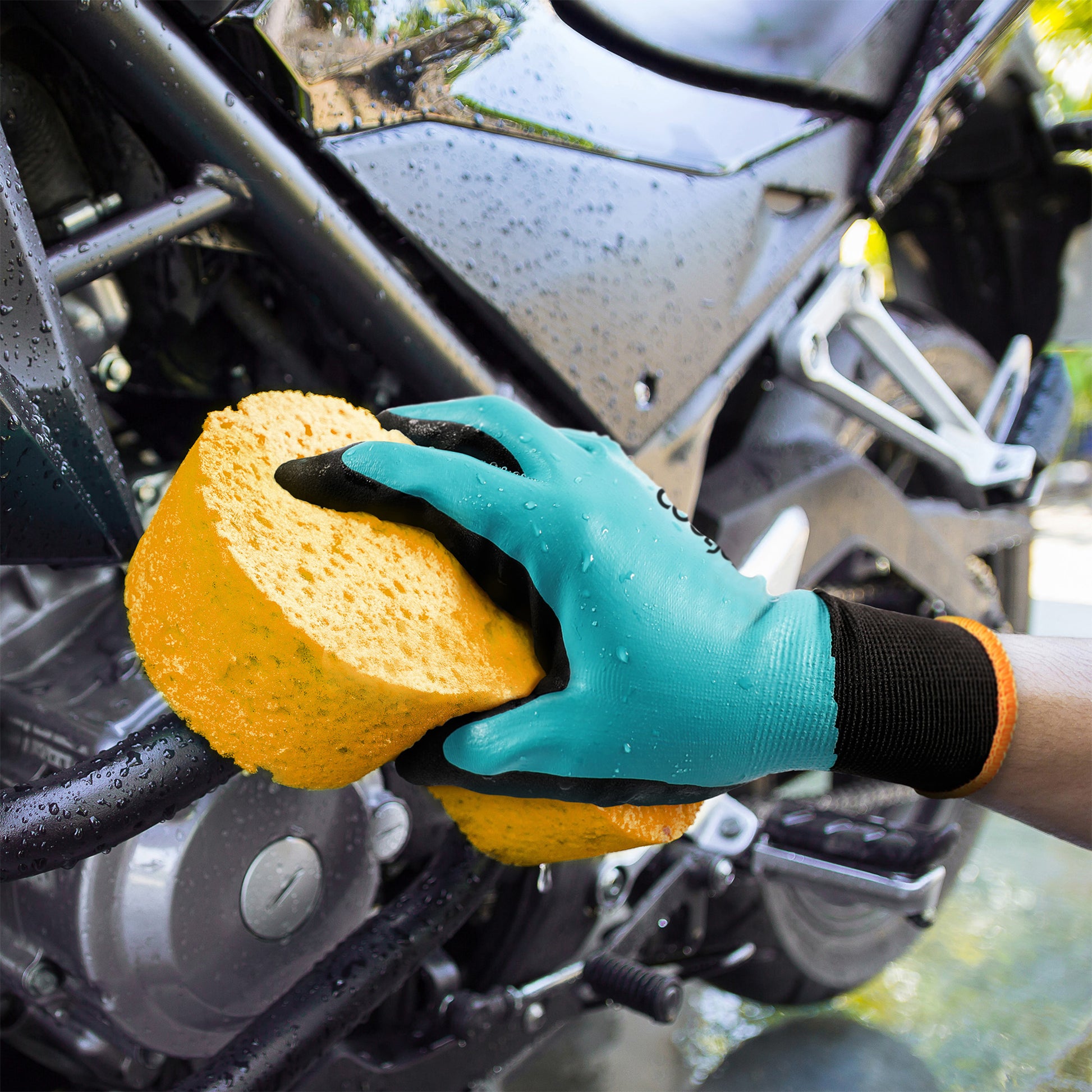 COOLJOB 2/6 Pairs Waterproof Gardening Work Gloves with grip, Double Rubber Coated (Blue)