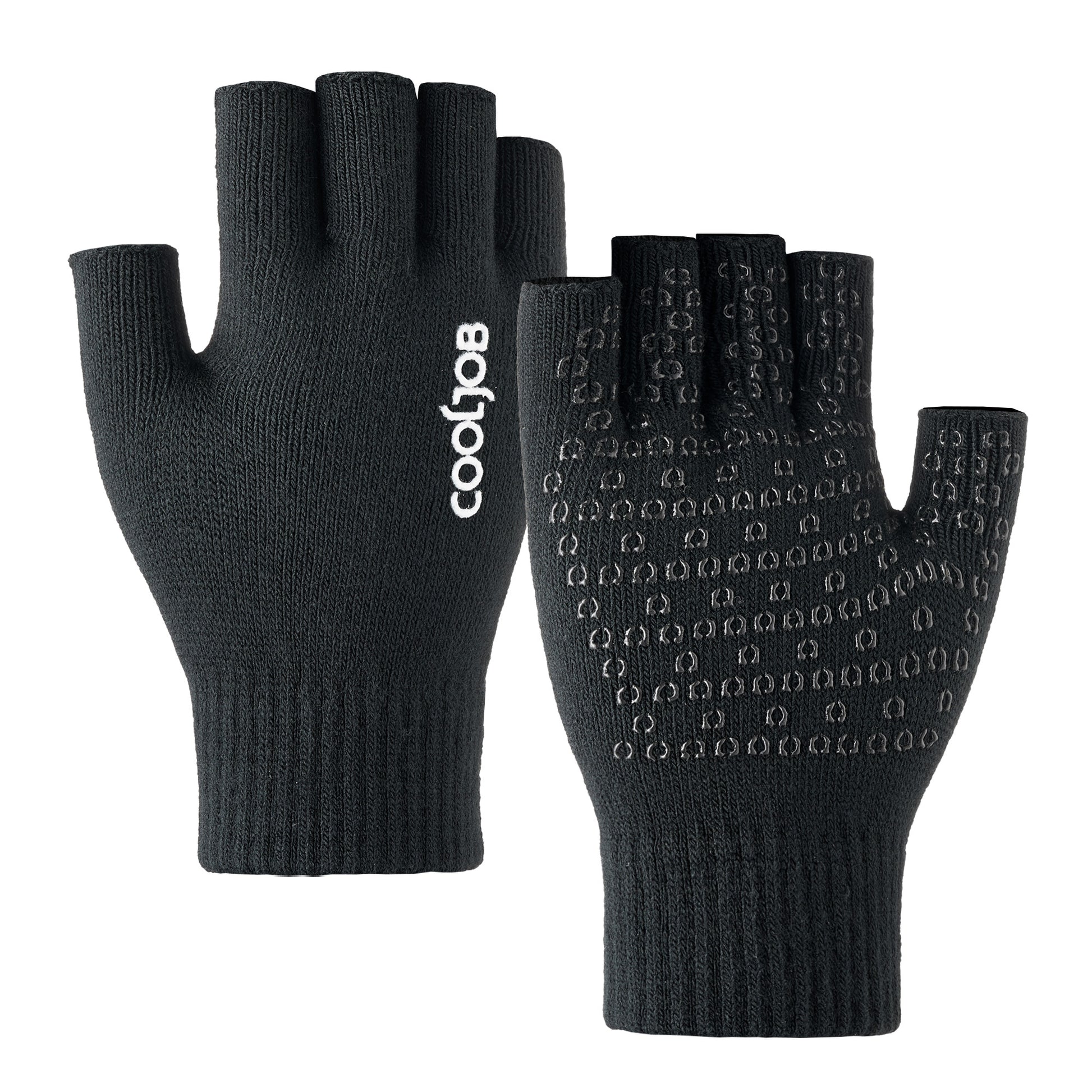 COOLJOB 2 Pairs Warm Knit Fingerless Gloves, Half Finger Winter Stretchy Mittens with Non-Slip Silicone Grip