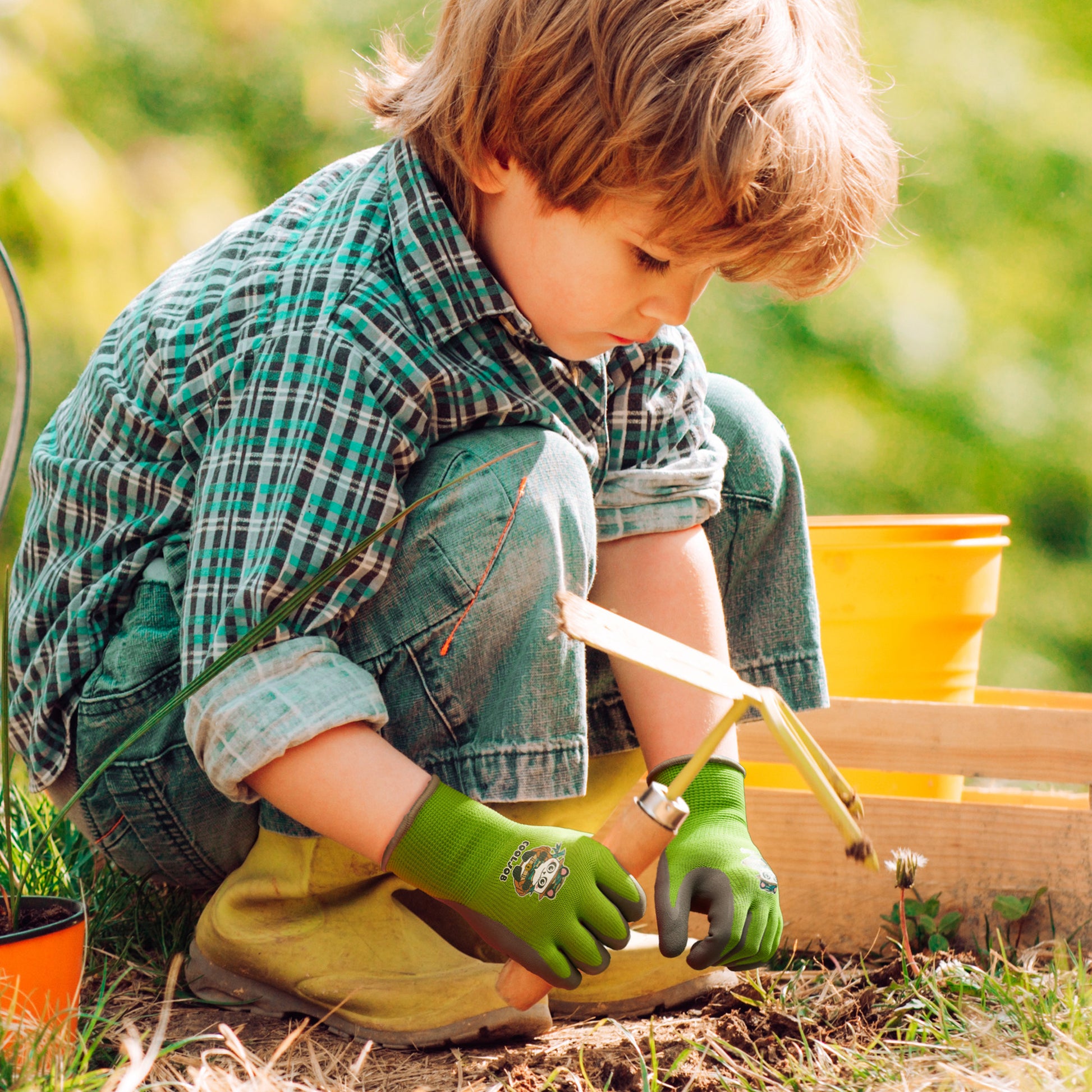 - Non-Slip Grip for Safety & Ease: The non-slip foamed latex coating on the palms and fingers offers a secure grip on gardening tools and other objects, helping your child maintain control and safety during tasks like weed pulling, fishing, and using light tools.