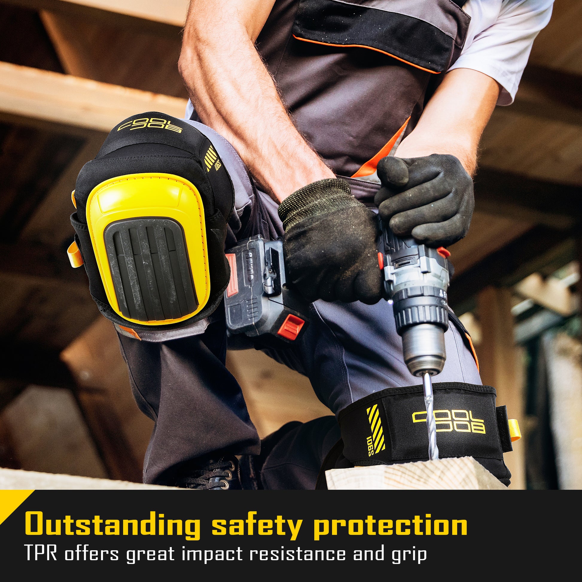 COOLJOB Professional Knee Pads with Heavy Duty Anti-Slip Cap, Comfortable Foam Cushion and Extra Thick Gel Padding